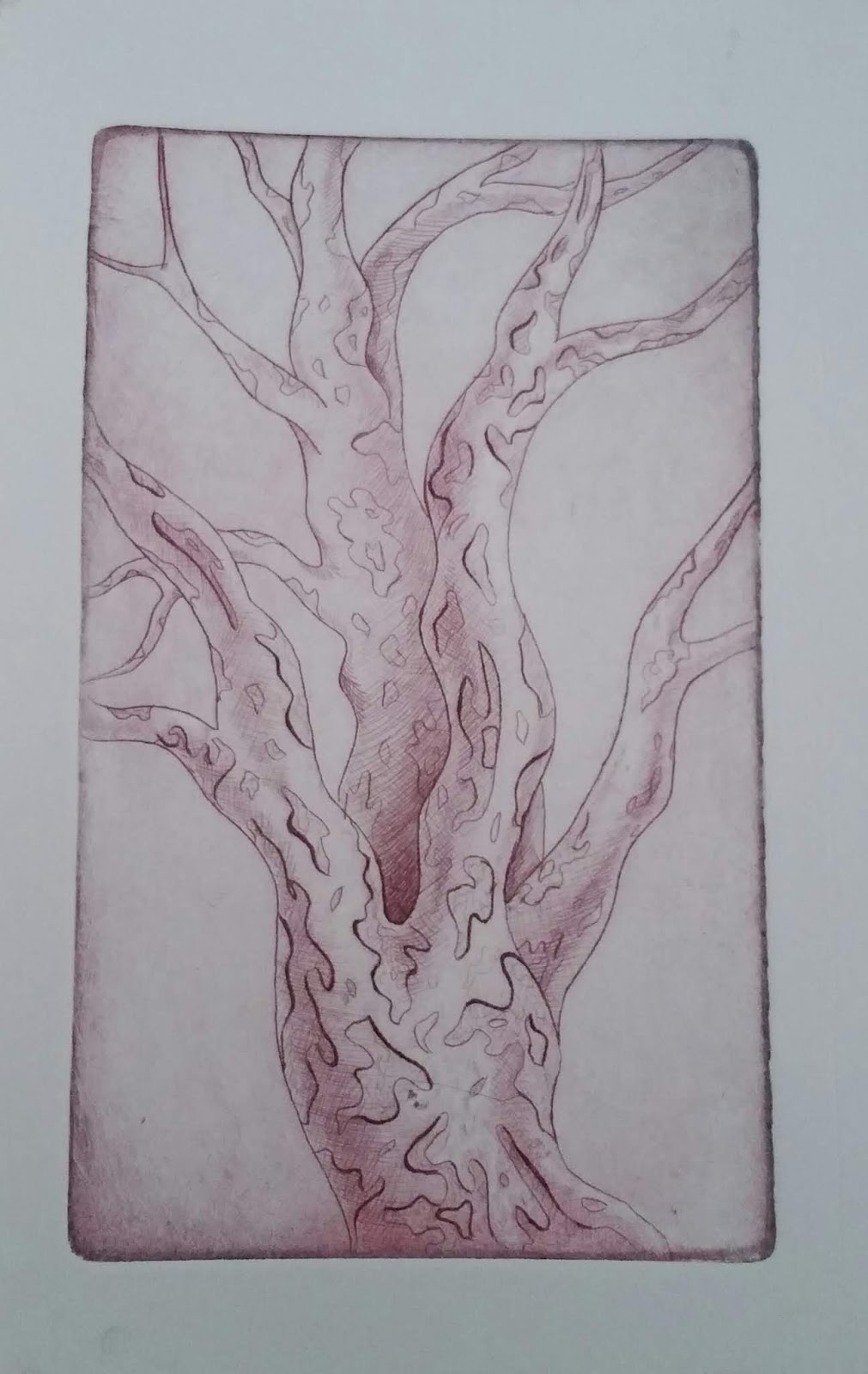 About a month later, I made another print that paired my color blocks with an intaglio of a sycamore I'd been meaning to make for at least four years: